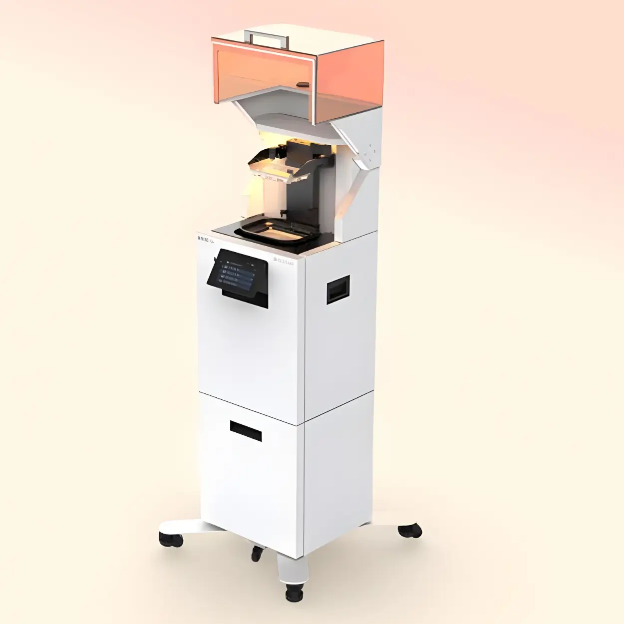 Built for industrial use with hands-free auto-door operation, a self-feeding resin tray, and built-in production traceability tools to support automated workflows.